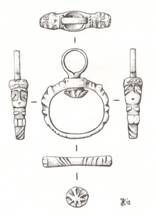 Norvic Archaeology provided technical illustration of a remarkable Romanesque style silver swivel on behalf of the finder, in preparation for submission of an article for publication in the Journal of the Suffolk Institute of Archaeology & History. The object was found intact and in good condition, it measures only around 1cm2 (scale 2:1) but is finely decorated with animal–like figures. The object resembles larger copper-alloy swivels used for tethering tame animals such as small dogs and hunting birds. Although no exact parallels have yet been identified, it is thought that this object may date to the 12th century and have served to tether a small exotic animal or bird.