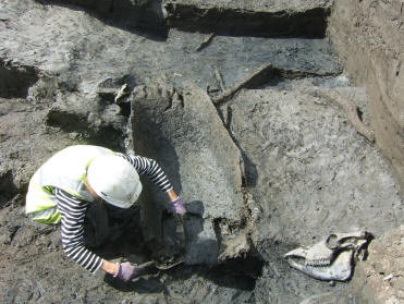 Giles was part of a team of local freelance archaeologists who had the muddy pleasure of excavating the surprising and rare remains of a Saxon wooden boat that was discovered during flood alleviation work on the Norfolk Broads. The log hewn boat was surrounded by animal skulls and may represent some form of pagan ritual. It is currently being conserved in York with the intention that it will be displayed at the Norwich Castle Museum.